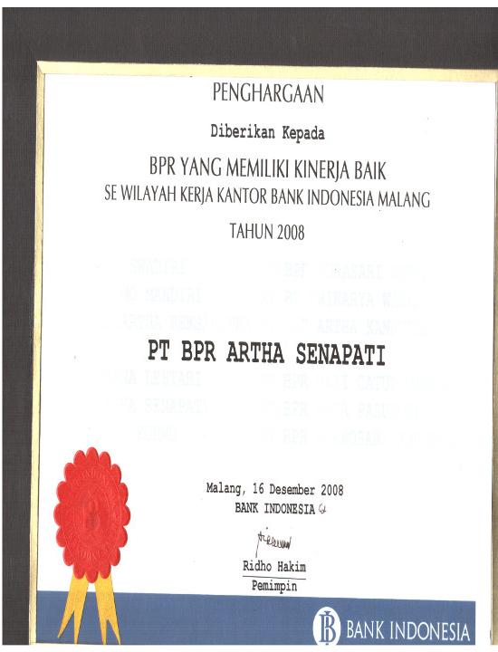 • Saat ini PT BPR Artha Senapati termasuk dalam golongan BPR KU 2 dengan total Asset sebesar Rp. 46.132.086.018,